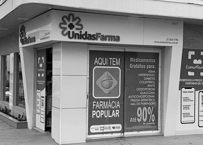 A UnidasFarma é uma Rede de farmácias que se dedica à sua saúde, beleza e bem estar, oferecendo aos seus clientes uma grande variedade de medicamentos, produtos de beleza, suplementos alimentares, vitaminas, higiene e cuidados pessoais e produtos ortopédicos.